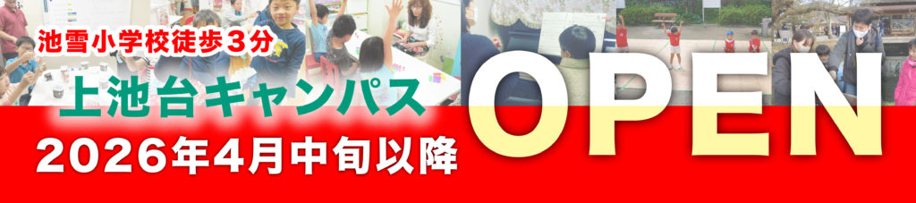 2026年4月より、上池台キャンパス OPENが決定しました! 知育、ピアノ、英会話、そろばん、書道、絵画、記述読解(国語)、算数、将棋など、 たくさんのレッスンを組み合わせてご受講いただけます! 体験レッスン受付開始ま […]